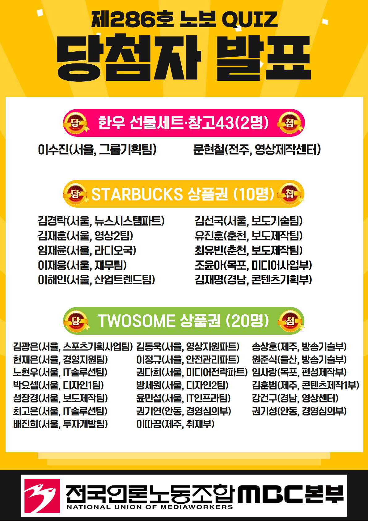 286호 노보 Quiz 당첨자 발표!! 축하드립니다
