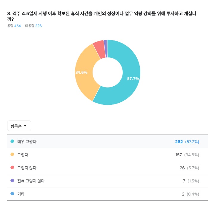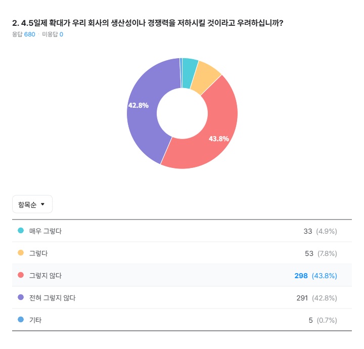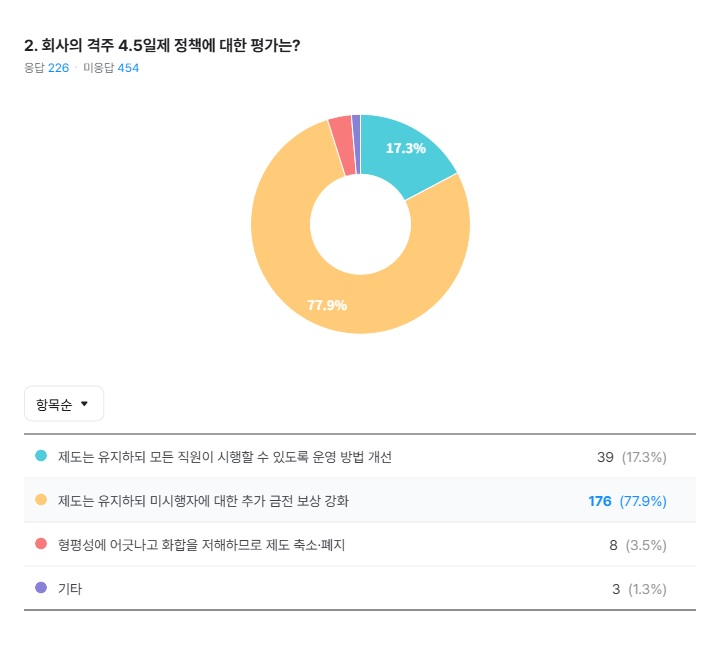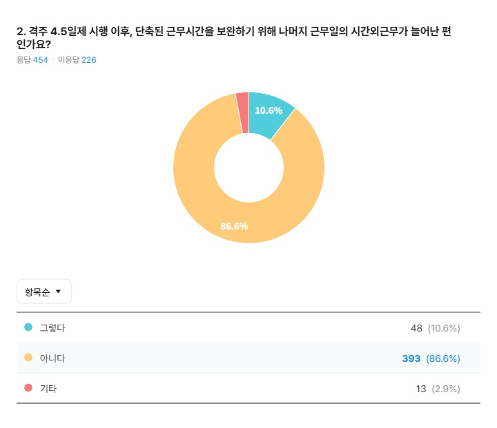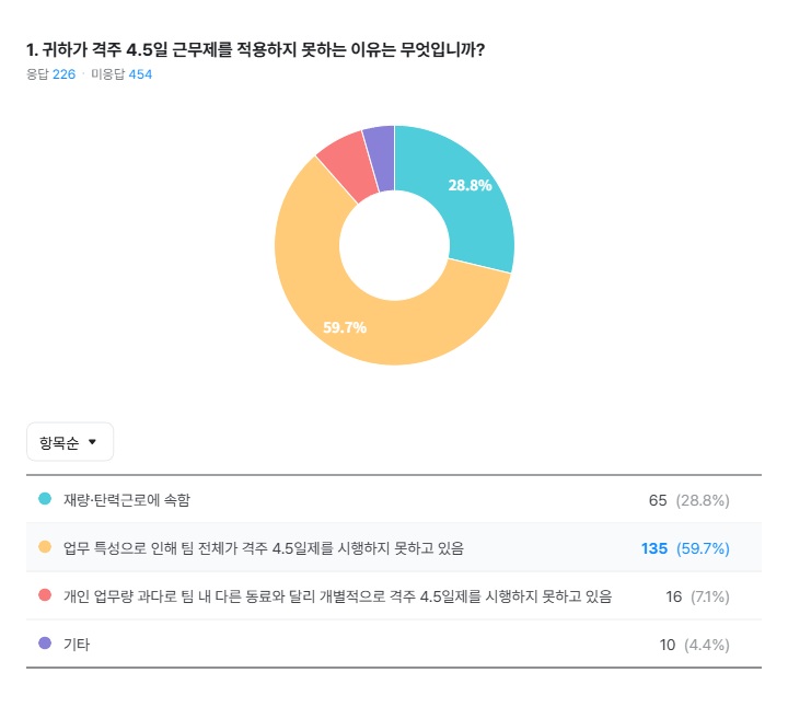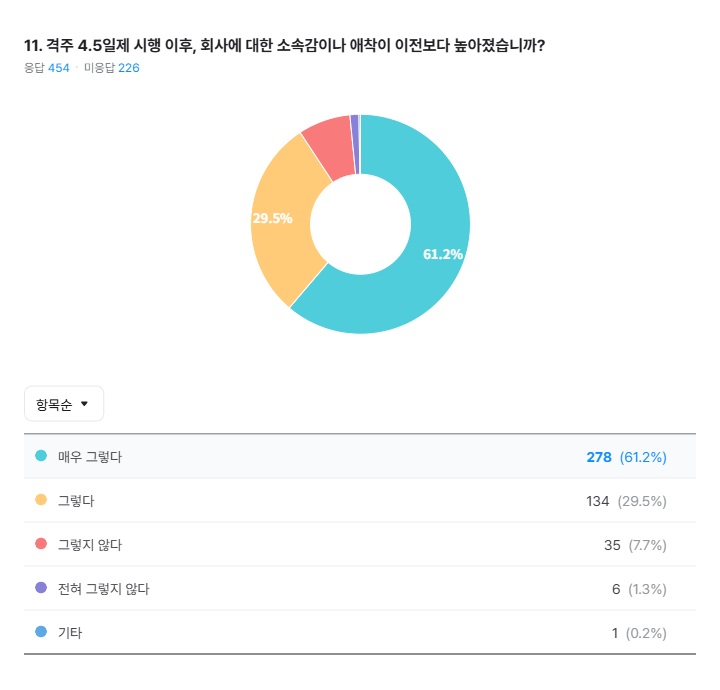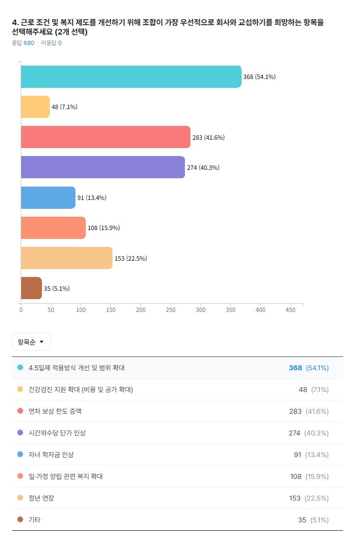 홈 조합활동 [서울지부] 4.5일제 확대 시행 관련 설문조사 전체 결과 전국언론노동조합 MBC본부 입력 2025-11-06 조회수 66 가 가 설문조사 대상자 : 전국언론노조 MBC본부 서울지부 조합원 1,174명 설문조사 응답자 : 680명 (응답률 58%) 설문조사 기간 : 2025년 10월 17일~10월 24일 설문 방법 : 익명 / 인터넷 설문 응답 (네이버웍스 링크) 설문조사 기관 : 전국언론노조 MBC본부 서울지부 조회수 66 저작권자 © 전국언론노조 MBC본부 무단전재 및 재배포 금지