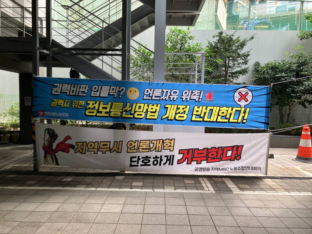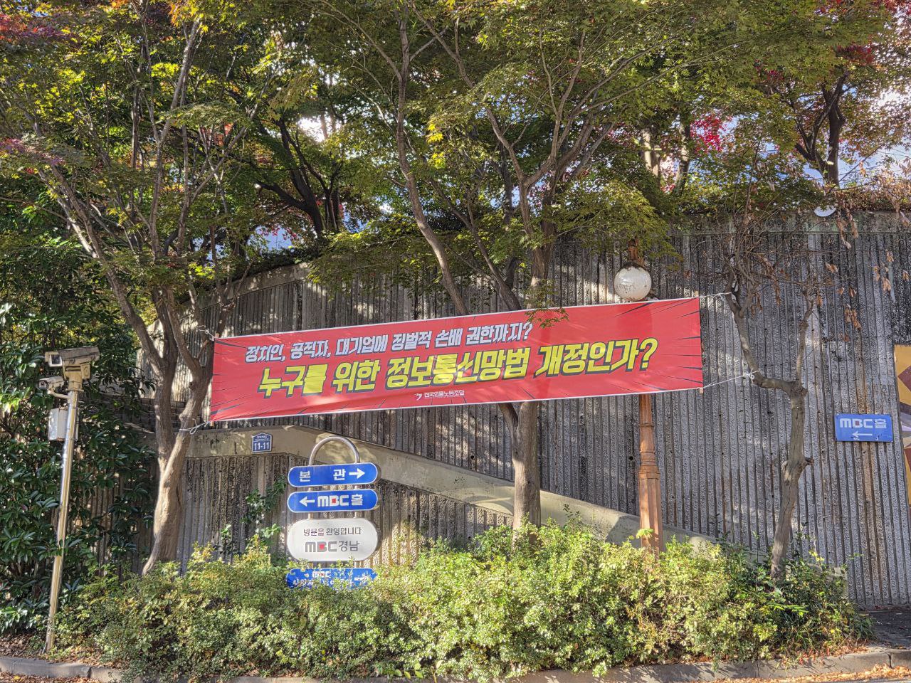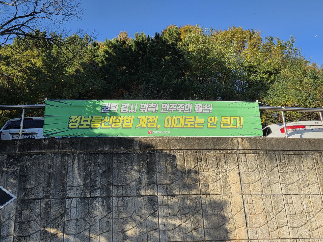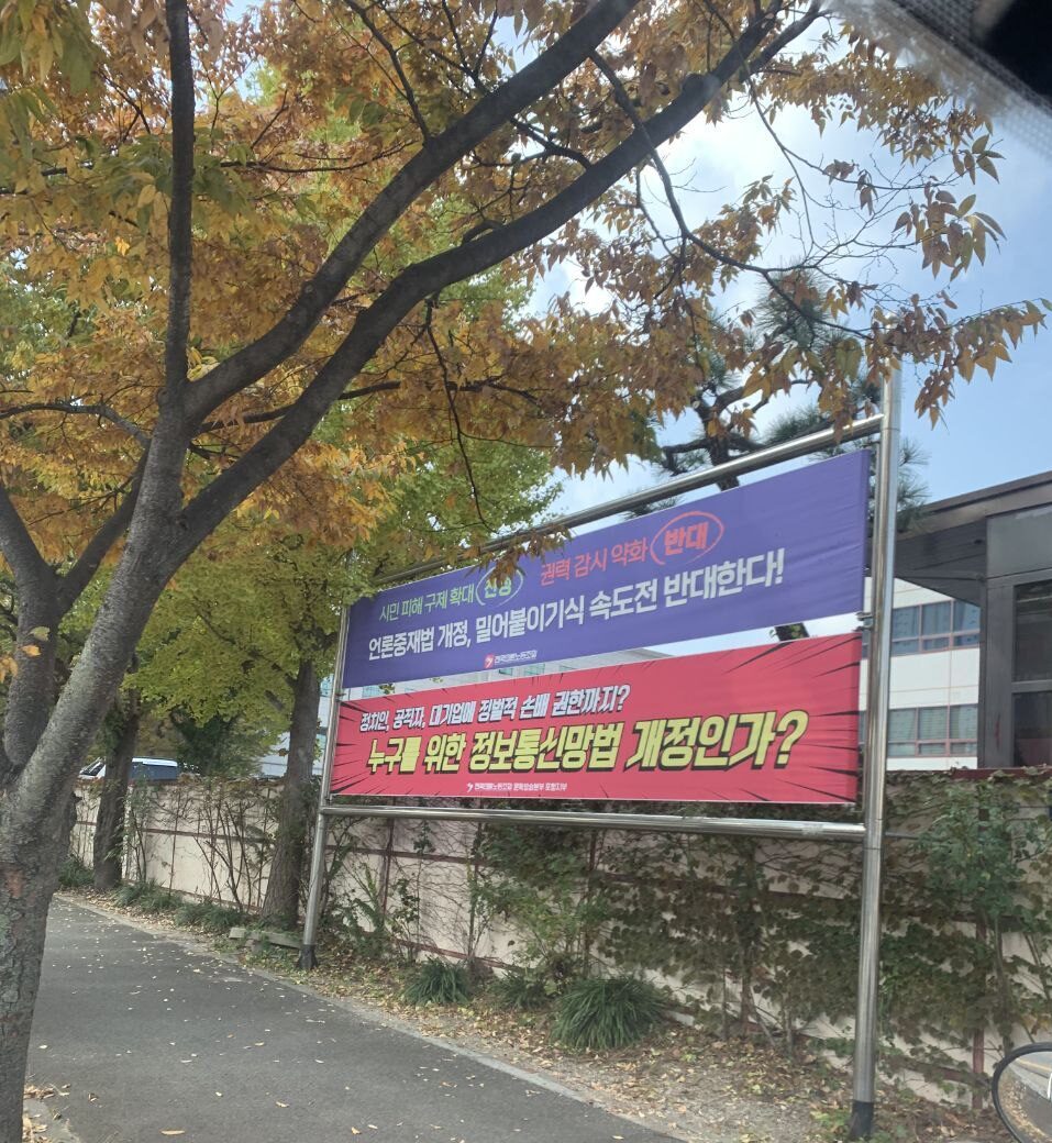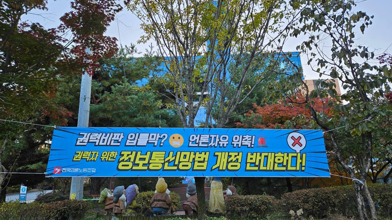 언론 자유 침해하는 정보통신망법 개정, 반대한다! [현수막 투쟁]
