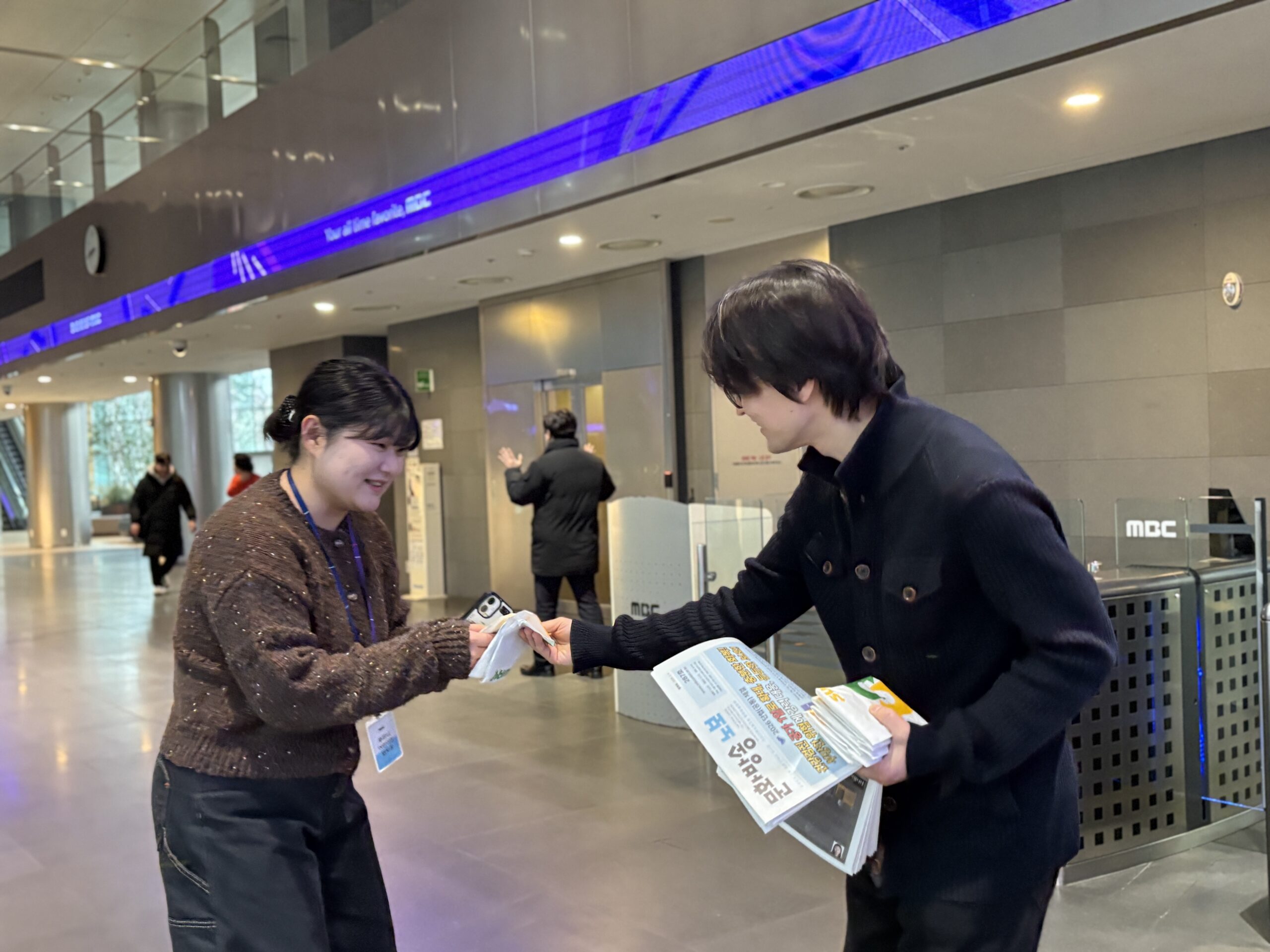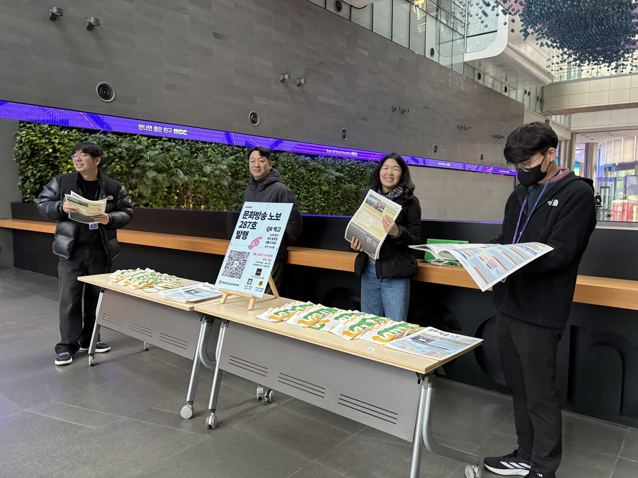 앗, 귀여운 미래의 새싹 조합원도 노보 배포 현장을 찾아 주었습니다~