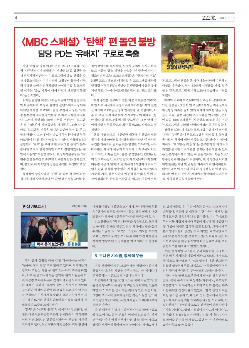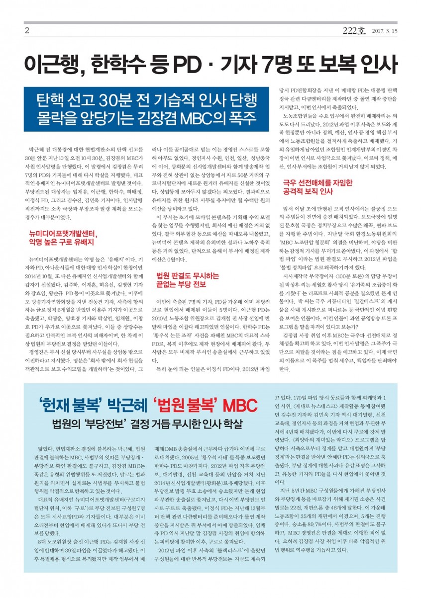 홈 노보 파면된 박근혜..다음은 김장겸이다! 전국언론노동조합 MBC본부 입력 2017-03-15 조회수 3,985 가 가 조회수 3,985 저작권자 © 전국언론노조 MBC본부 무단전재 및 재배포 금지