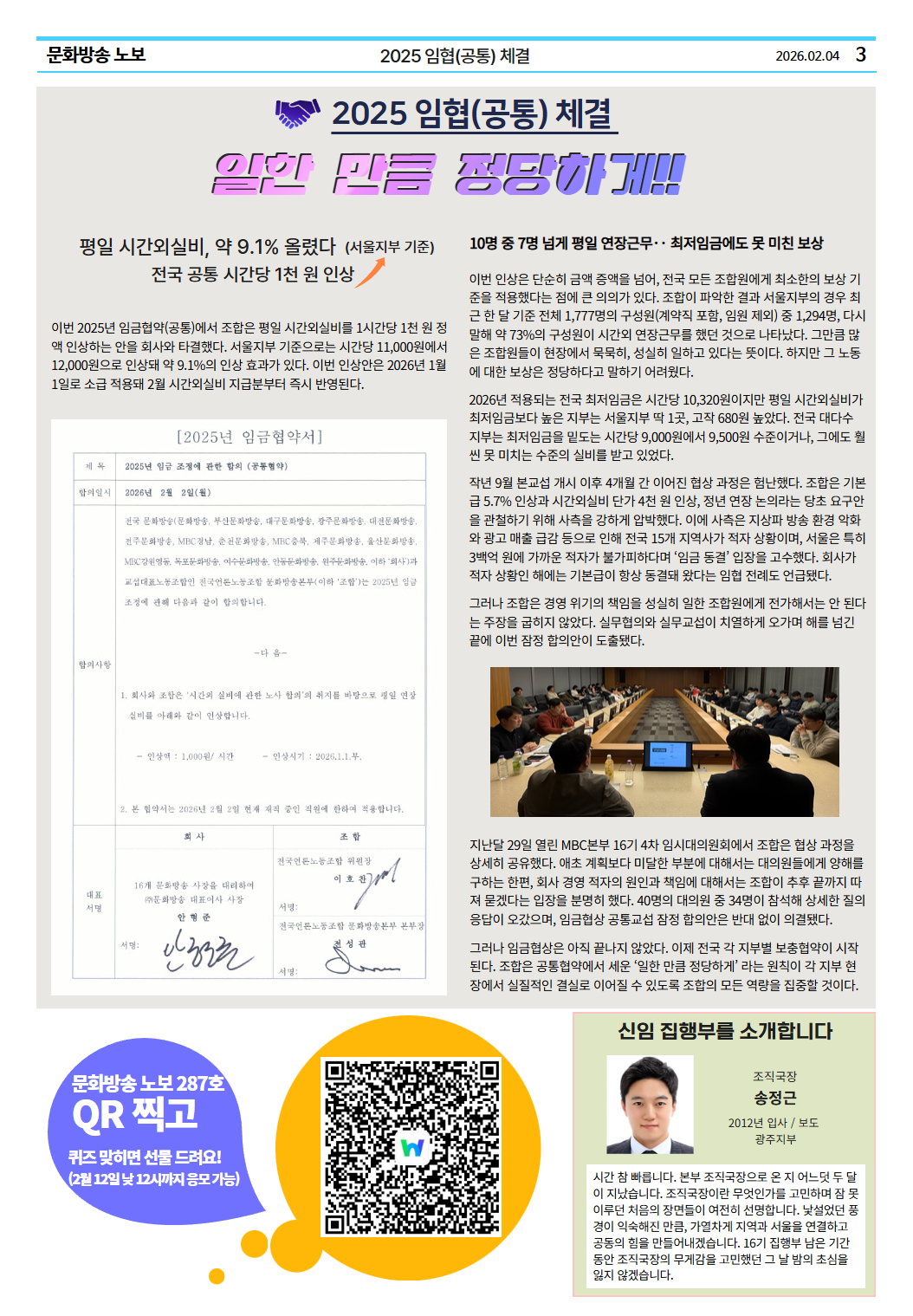 홈 노보 2025 임협(공통) 체결_일한 만큼 정당하게! 전국언론노동조합 MBC본부 입력 2026-02-04 조회수 15 가 가 조회수 15 저작권자 © 전국언론노조 MBC본부 무단전재 및 재배포 금지